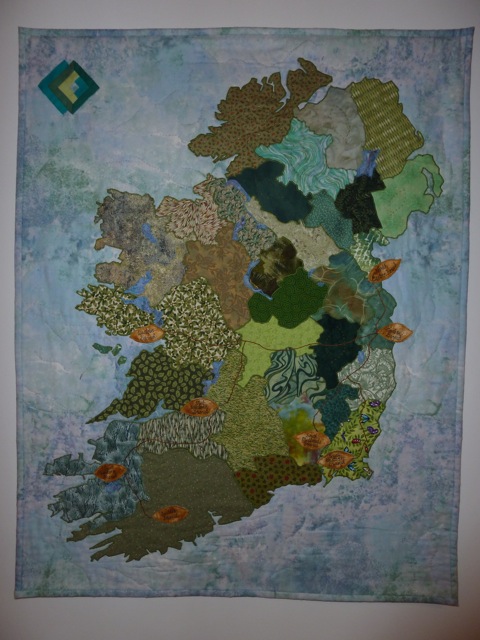 There wasn't much quilting going on but I did get a quarter meter of one print. The one shop I found had almost all fabric that is from the US, at a considerably higher price than here. I did find a very small exhibit of local quilts in Galway, though. That was a nice surprise!